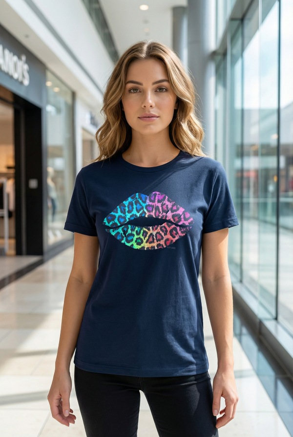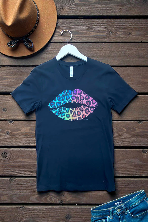 This shirt is made with a DTF (direct to Film) transfer that are more vibrant in color. The hand feel is between a plastisol transfer (our usual designs) and a vinyl transfer.*** Basic Short sleeve graphic tee with a crew neck BC DTF LEO LIPS