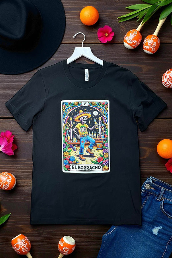 This shirt is made with a DTF (direct to Film) transfer that are more vibrant in color. The hand feel is between a plastisol transfer (our usual designs) and a vinyl transfer.*** Basic Short sleeve graphic tee with a crew neck BC DTF EL BORACHO