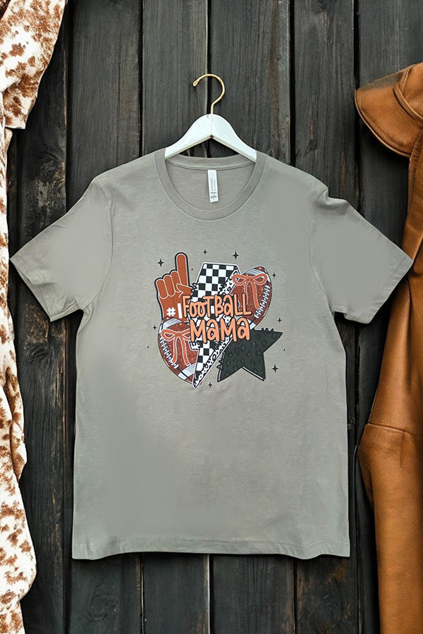 This shirt is made with a DTF (direct to Film) transfer that are more vibrant in color. The hand feel is between a plastisol transfer (our usual designs) and a vinyl transfer.*** Basic Short sleeve graphic tee with a crew neck BC DTF FOOTBALL MAMA