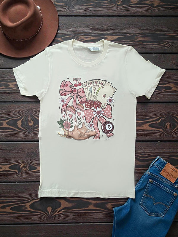 This shirt is made with a DTF (direct to Film) transfer that are more vibrant in color. The hand feel is between a plastisol transfer (our usual designs) and a vinyl transfer.*** Basic Short sleeve graphic tee with a crew neck BC DTF CHERRY BOW BOOTS