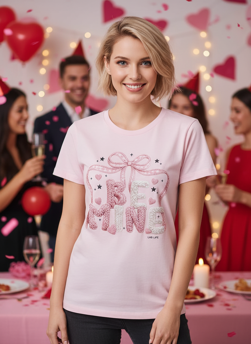 This shirt is made with a DTF (direct to Film) transfer that are more vibrant in color. The hand feel is between a plastisol transfer (our usual designs) and a vinyl transfer.*** Basic Short sleeve graphic tee with a crew neck BC DTF YARN BE MINE