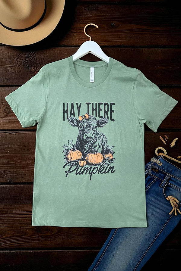 This shirt is made with a DTF (direct to Film) transfer that are more vibrant in color. The hand feel is between a plastisol transfer (our usual designs) and a vinyl transfer.*** Basic Short sleeve graphic tee with a crew neck BC DTF HEY THERE PUMPKINS