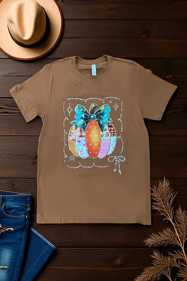 This shirt is made with a DTF (direct to Film) transfer that are more vibrant in color. The hand feel is between a plastisol transfer (our usual designs) and a vinyl transfer.*** Basic Short sleeve graphic tee with a crew neck BC DTF BOW PUMPKIN