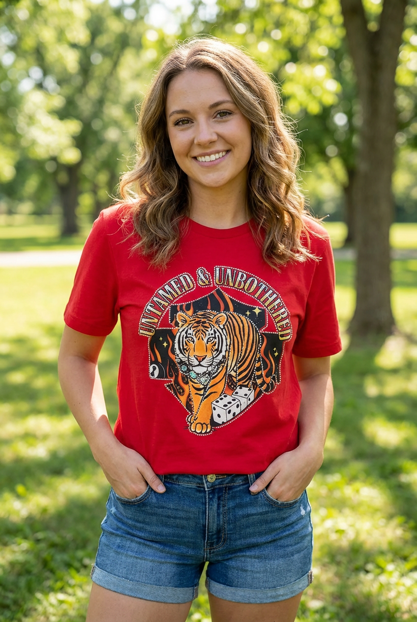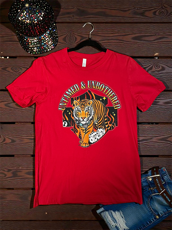 This shirt is made with a DTF (direct to Film) transfer that are more vibrant in color. The hand feel is between a plastisol transfer (our usual designs) and a vinyl transfer.*** Basic Short sleeve graphic tee with a crew neck BC DTF RS UNTAMED