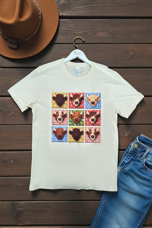 This shirt is made with a DTF (direct to Film) transfer that are more vibrant in color. The hand feel is between a plastisol transfer (our usual designs) and a vinyl transfer.*** Basic Short sleeve graphic tee with a crew neck BC DTF FLORAL COWS