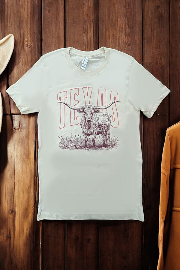 This shirt is made with a DTF (direct to Film) transfer that are more vibrant in color. The hand feel is between a plastisol transfer (our usual designs) and a vinyl transfer.*** Basic Short sleeve graphic tee with a crew neck BC DTF TX BULL