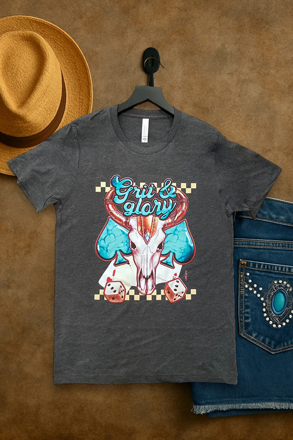 This shirt is made with a DTF (direct to Film) transfer that are more vibrant in color. The hand feel is between a plastisol transfer (our usual designs) and a vinyl transfer.*** Basic Short sleeve graphic tee with a crew neck BC DTF GRACE AND GRIT