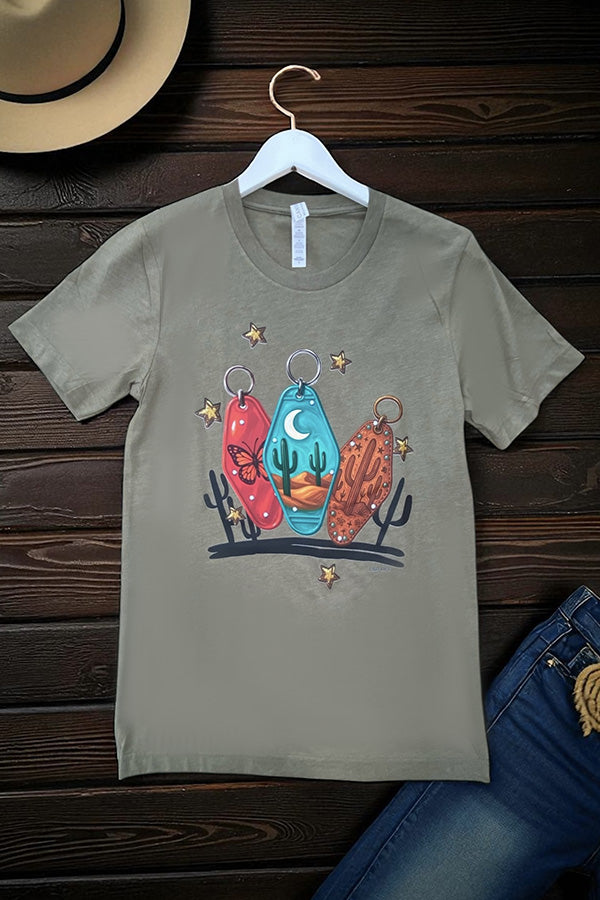 This shirt is made with a DTF (direct to Film) transfer that are more vibrant in color. The hand feel is between a plastisol transfer (our usual designs) and a vinyl transfer.*** Basic Short sleeve graphic tee with a crew neck BC DTF CACTUS KEY CHAINS