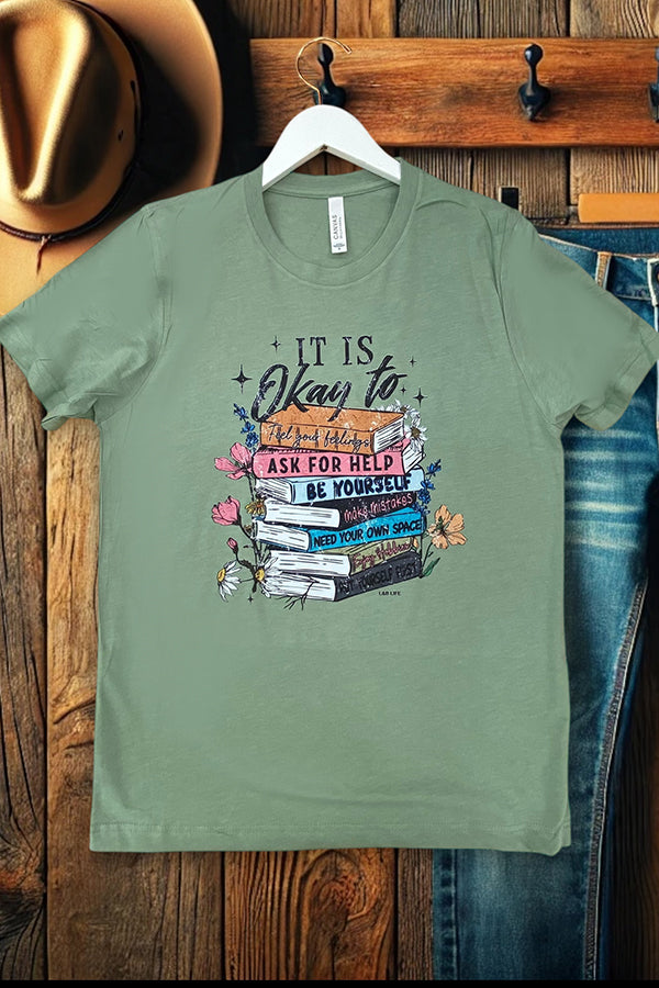 This shirt is made with a DTF (direct to Film) transfer that are more vibrant in color. The hand feel is between a plastisol transfer (our usual designs) and a vinyl transfer.*** Basic Short sleeve graphic tee with a crew neck BC DTF ITS OKAY