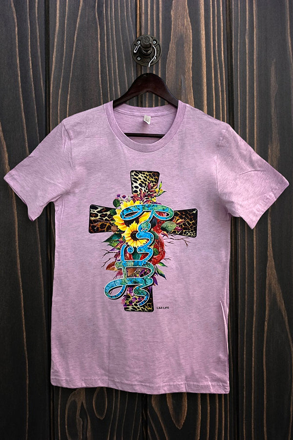 BC DTF LEO FAITH CROSS - HEATHER LAVENDER - Lucky and Blessed Life LLC / L&B Life