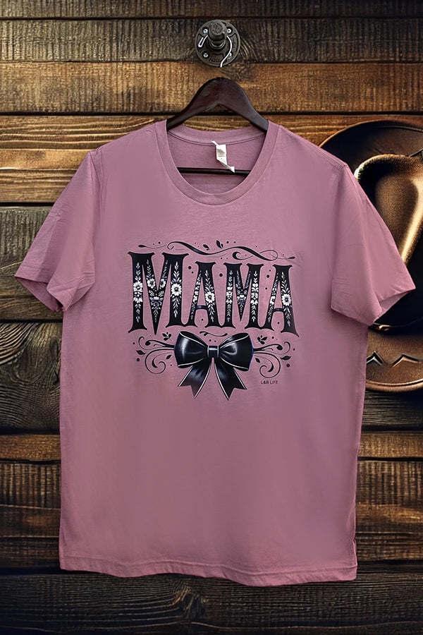 This shirt is made with a DTF (direct to Film) transfer that are more vibrant in color. The hand feel is between a plastisol transfer (our usual designs) and a vinyl transfer.*** Basic Short sleeve graphic tee with a crew neck BC DTF BLACK BOW MAMA