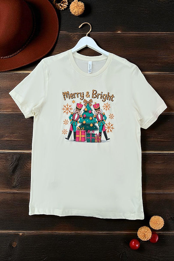 This shirt is made with a DTF (direct to Film) transfer that are more vibrant in color. The hand feel is between a plastisol transfer (our usual designs) and a vinyl transfer.*** Basic Short sleeve graphic tee with a crew neck BC DTF MERRY AND BRIGHT