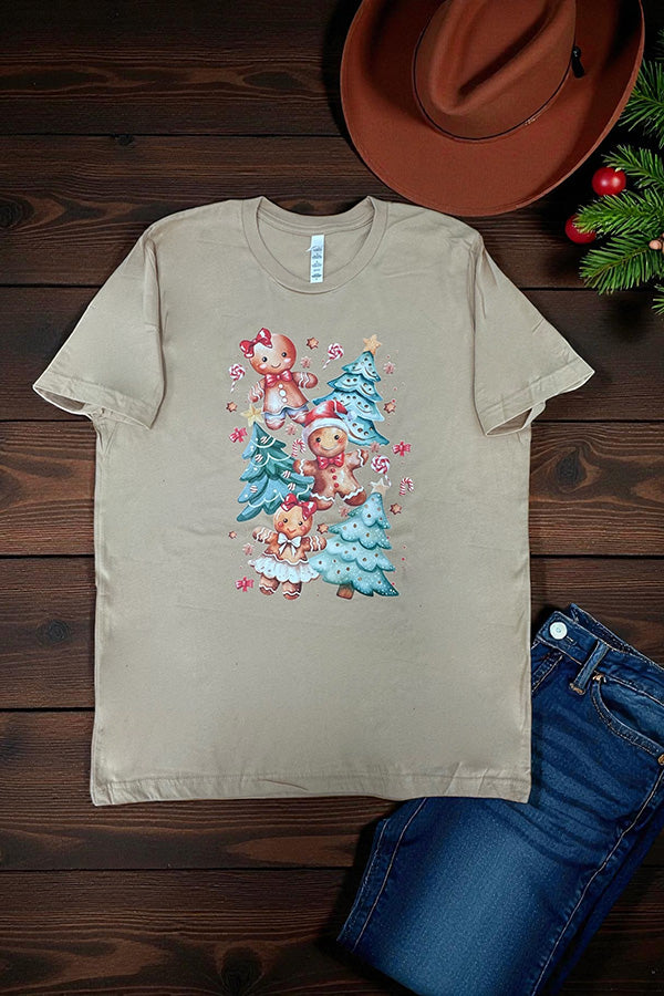 This shirt is made with a DTF (direct to Film) transfer that are more vibrant in color. The hand feel is between a plastisol transfer (our usual designs) and a vinyl transfer.*** Basic Short sleeve graphic tee with a crew neck BC DTF TREES GINGERBREADS