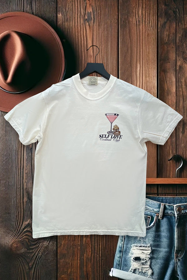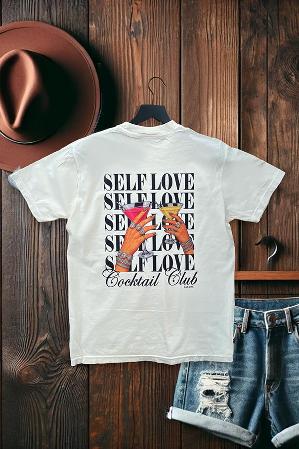 This shirt is made with a DTF (direct to Film) transfer that are more vibrant in color. The hand feel is between a plastisol transfer (our usual designs) and a vinyl transfer.*** Basic Short sleeve graphic tee with a crew neck CC DTF SELF LOVE CLUB